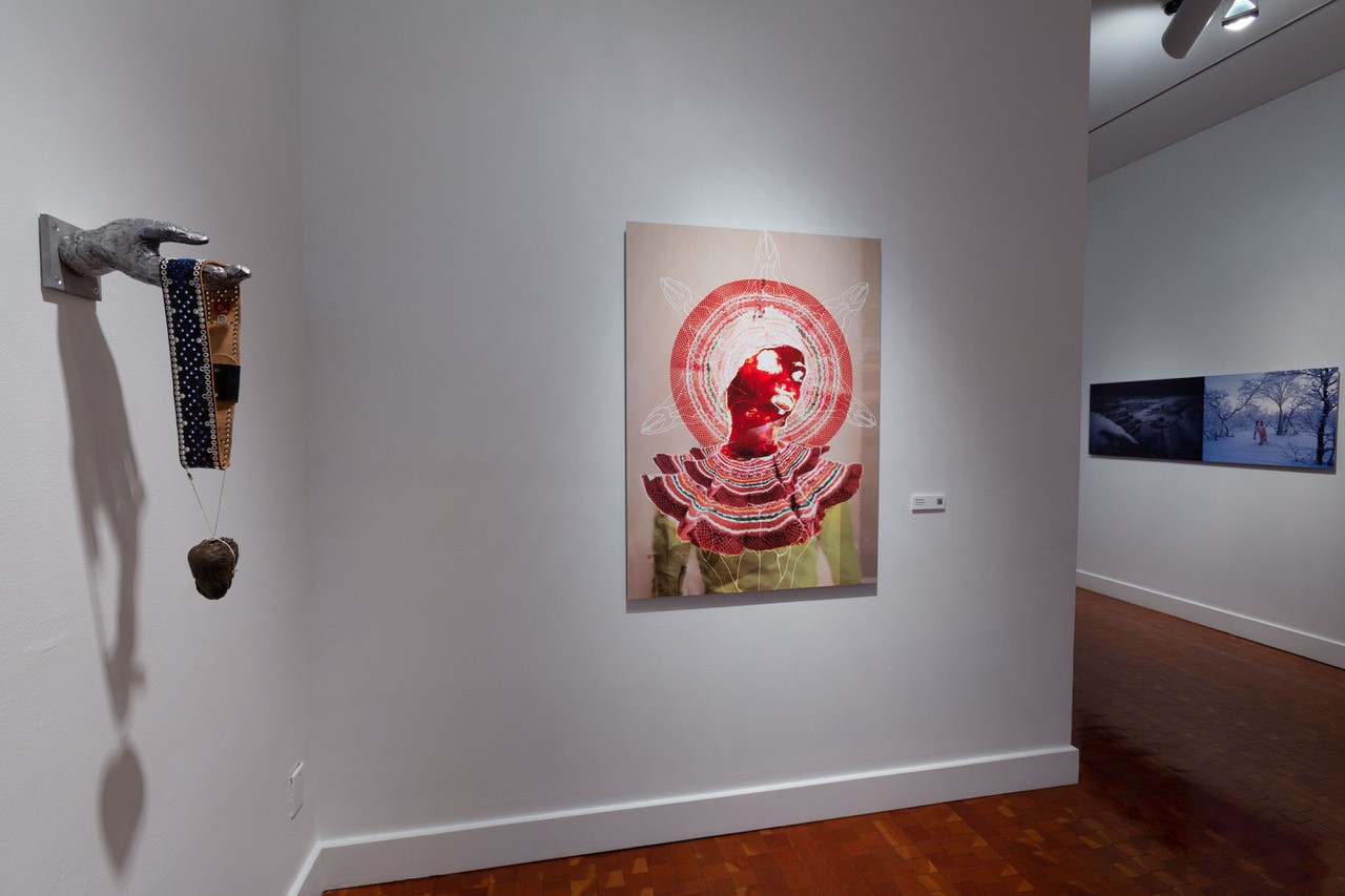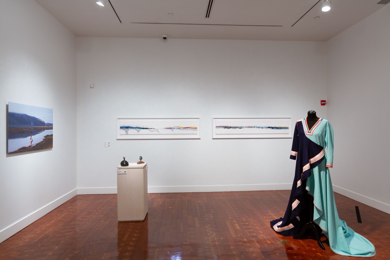 On Thursday, 13 April, Arctic Highways opened at Scandinavia House, in New York. The reception began with a Jojk performance by Lars Henrik Blind, followed by an artist panel with Tomas Colbengston, Britta Marakatt-Labba, and Sonya Kelliher Combs, moderated by Scandinavia House’s manager of exhibitions and community programs, Emily Stoddart. To continue the opening celebrations, on Saturday, April 15, Greenlandic dancer Elisabeth Heilman Blind performed her Maskdance with a surprise visit from acclaimed Kalaaleq performance artist Lakkuluk. Following the performance there was a screening of the film about Britta Marakatt-Labba, titled, Historjá – Stitches for Sapmí, directed by Thomas Jackson. A conversation between Marakatt-Labba, Elisabeth Heilmann Blind, Thomas Jackson, and Tomas Colbengston accompanied the film.