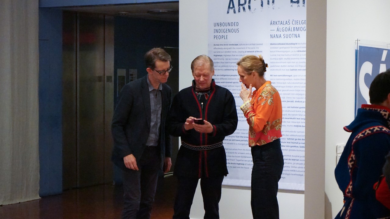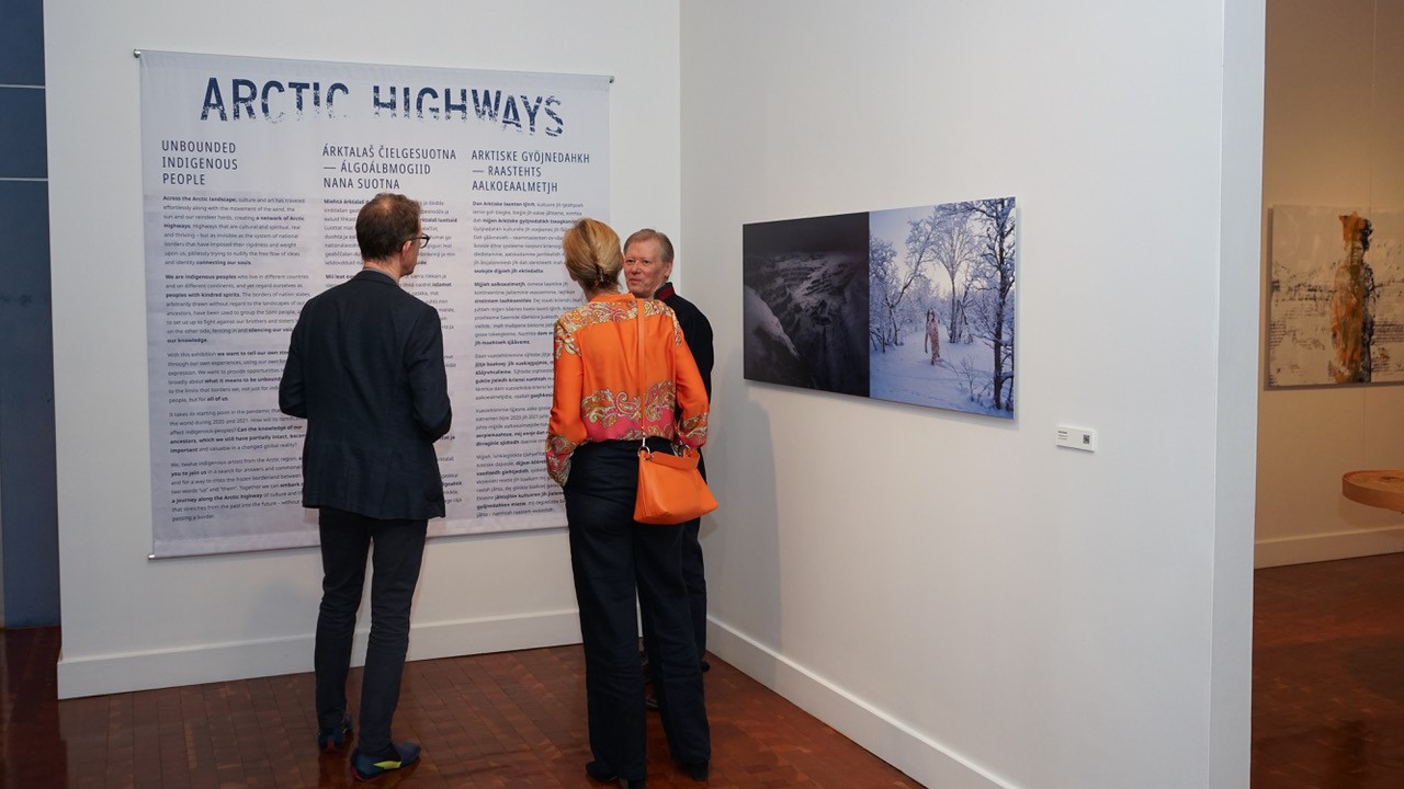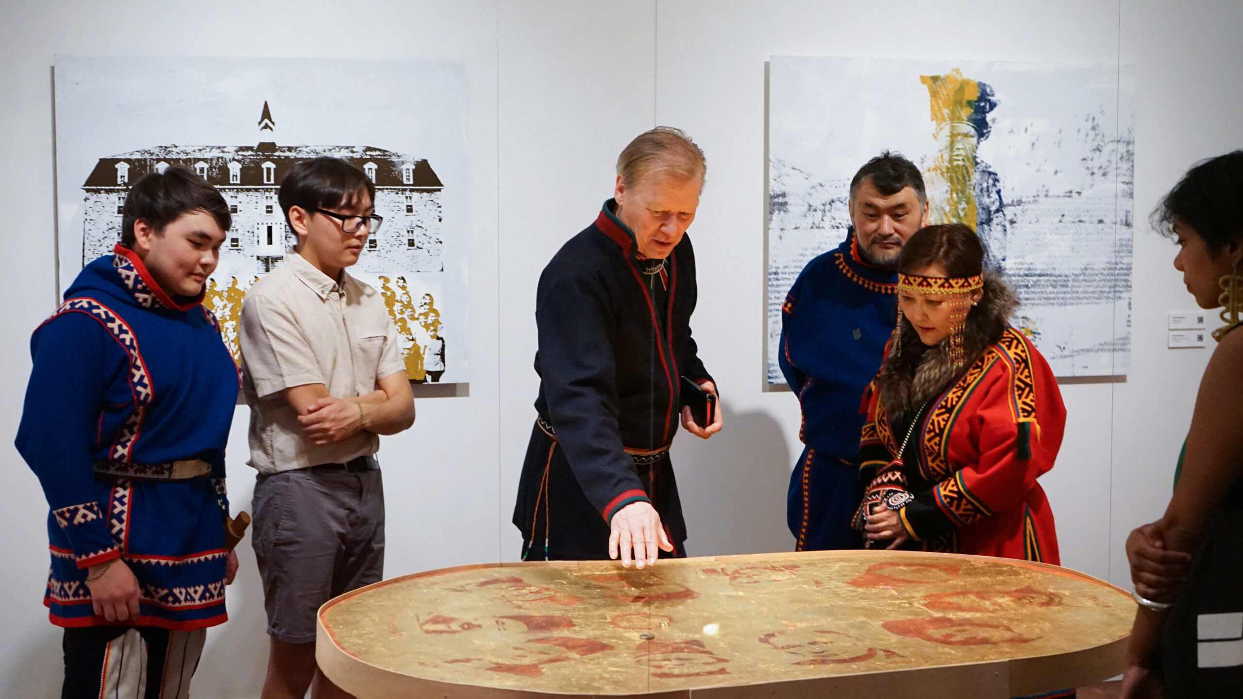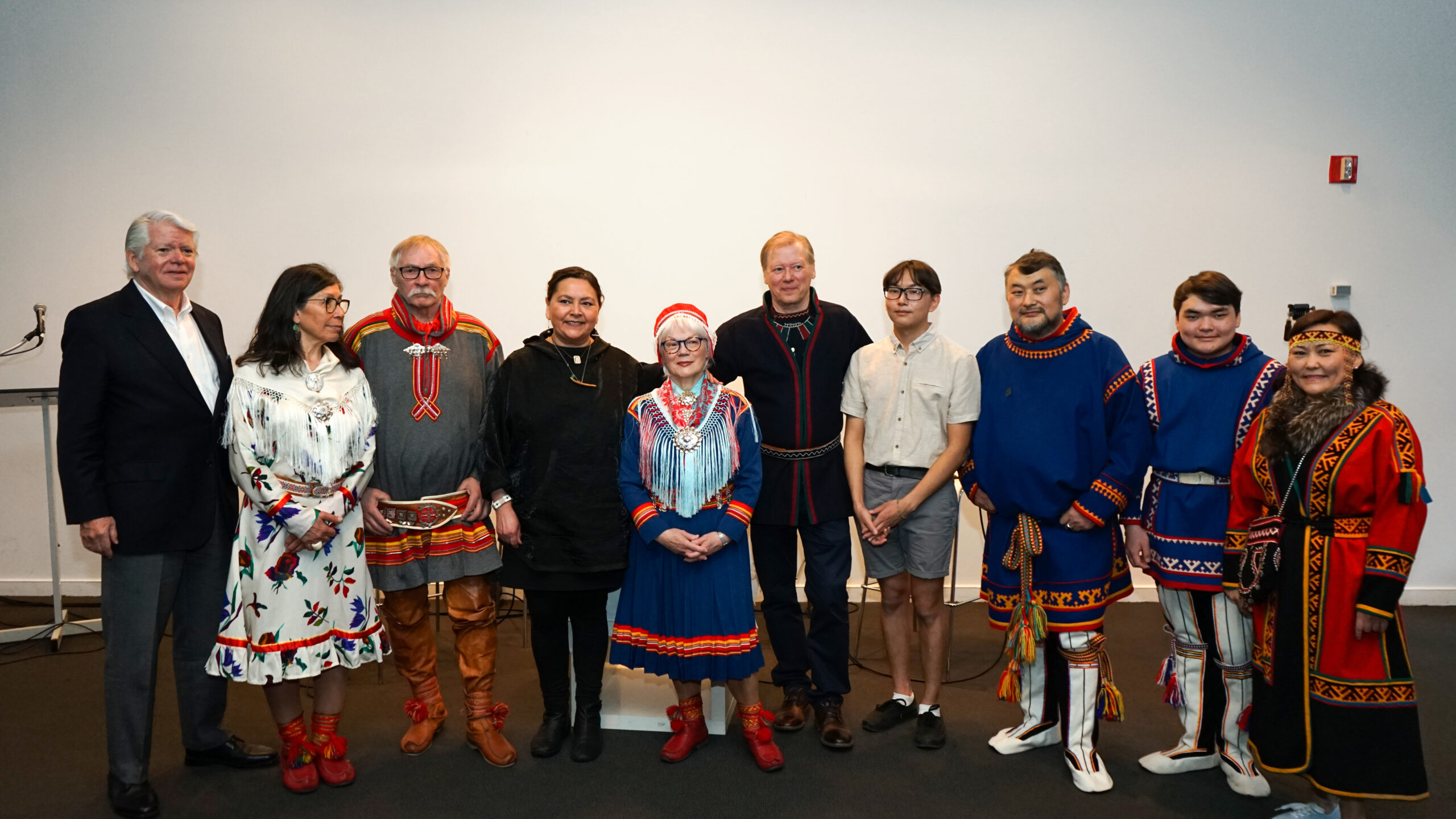 The opening weekend celebration coincided with the Indigenous People’s Forum at the UN, a yearly gathering of indigenous leaders from around the world. The following week in partnership with the exhibition, Scandinavia House presented Climate Action – Future Changes, exploring the Arctic indigenous peoples’ fight against climate change through films and media, co-hosted by the Arctic Indigenous Film Fund (AIFF). Welcoming notes to the program were provided by Dariio Mejia Montalvo (Chair of the Permanent Forum for Indigenous Issues), Aslak Holmberg (President, Saami Council), and Petteri Vuorimäki (Ambassador for Arctic Affairs, the Ministry for Foreign Affairs of Finland). The discussion was followed by a screening of the documentary short Salmon Reflection (dir. Anna Hoover, Alaska, 2022), and a reception, and the galleries were open for viewing. The exhibition will run at Scandinavia House until July 22, 2023.