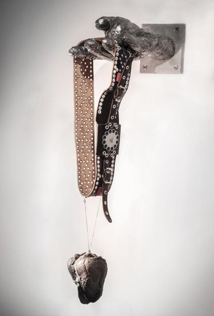 I ”Hand, heart and belt” sträcker sig en grov hand i aluminium fram och håller pojkens lilla bälte, från vilket ett renhjärta smitt i järn hänger. Även om kolten försvann från kroppen levde minnet kvar i hjärtat – den plats som också rymmer den vuxnes sorg över barnets behov av att välja.